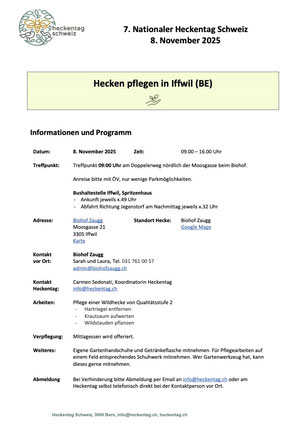 Am 7. nationale Heckentag pflegen wir die 250 m und über 40-jährige Wildhecke (Q2) in Iffwil