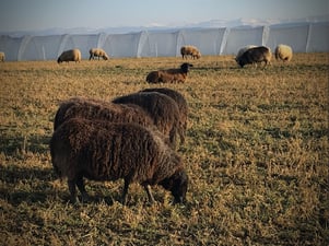Seit ein paar Tagen grast eine Schafherde von einem befreundeten Bauern auf unseren Feldern. Auf der Winterweide futtern die Schafe das Gras und passen darauf auf, dass unser Luzerne-Gras-Gemisch nicht zu hoch in den Himmel schiesst. Zudem düngen die Tiere die Fläche auf natürliche Weise durch ihren Mist und Urin. Und wir freuen uns, neben den wolligen Tieren unser Wintergemüse zu ernten.